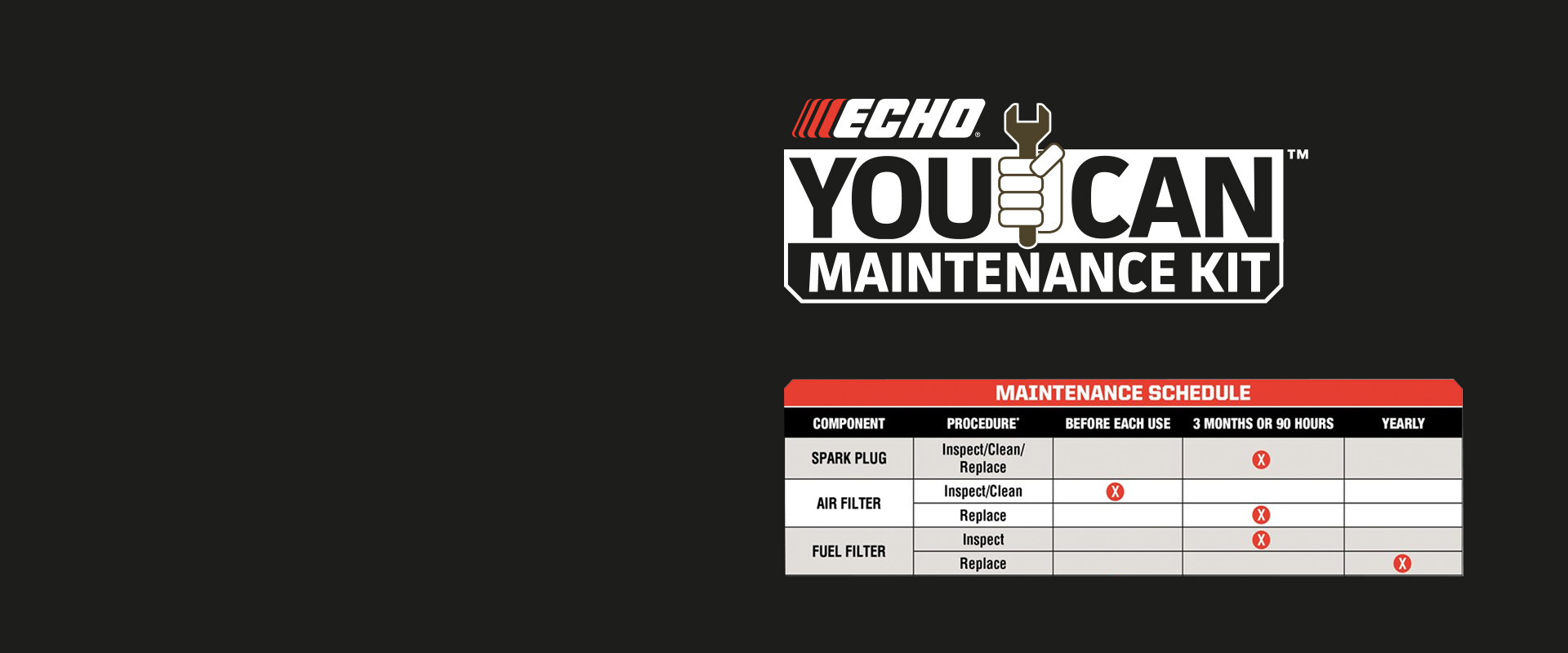 WEES PROACTIEF. Raadpleeg de aanbevolen onderhoudsschema’s en verleng niet enkel de levensduur van uw ECHO-machine, maar bespaar ook tijd en geld door grote reparaties te verminderen die vaak worden veroorzaakt door slecht onderhouden toestellen.